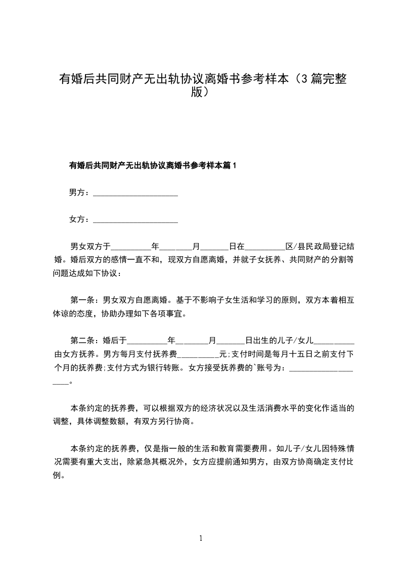 八、本协议一式三份,双方各执一份,婚姻登记机关存档一份。