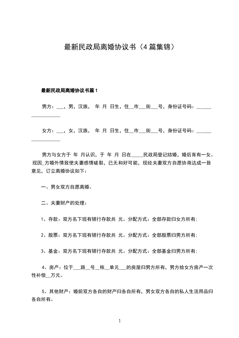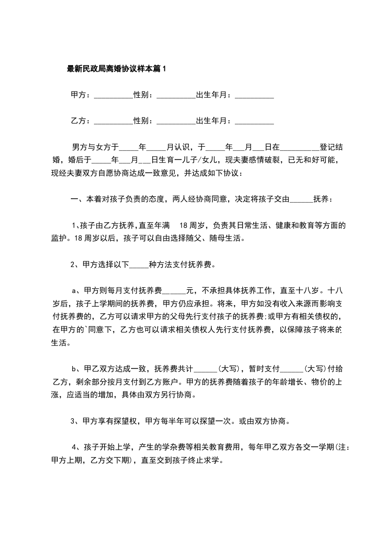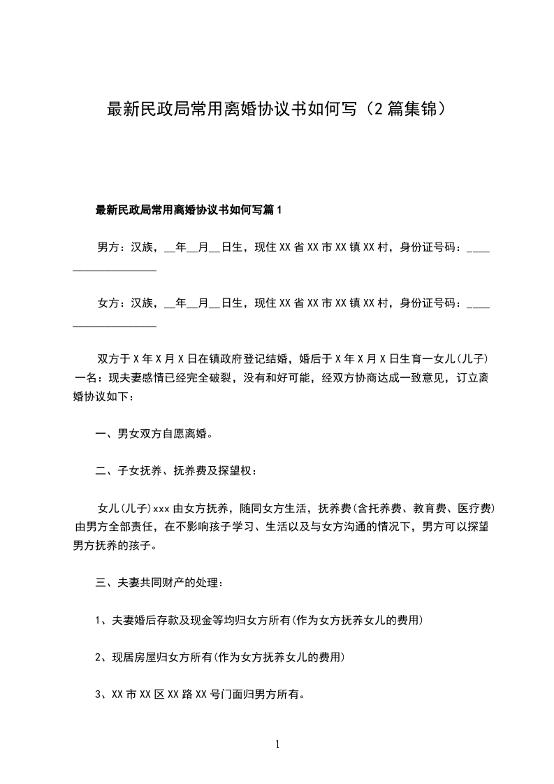 最新民政局常用协议离婚书参考样式篇1