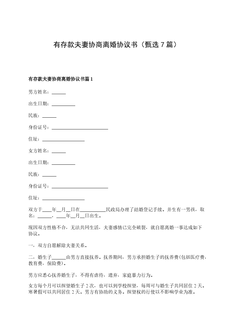 1、存款:双方确认无共同存款,双方各自名下的存款保持不变,归各自所有;