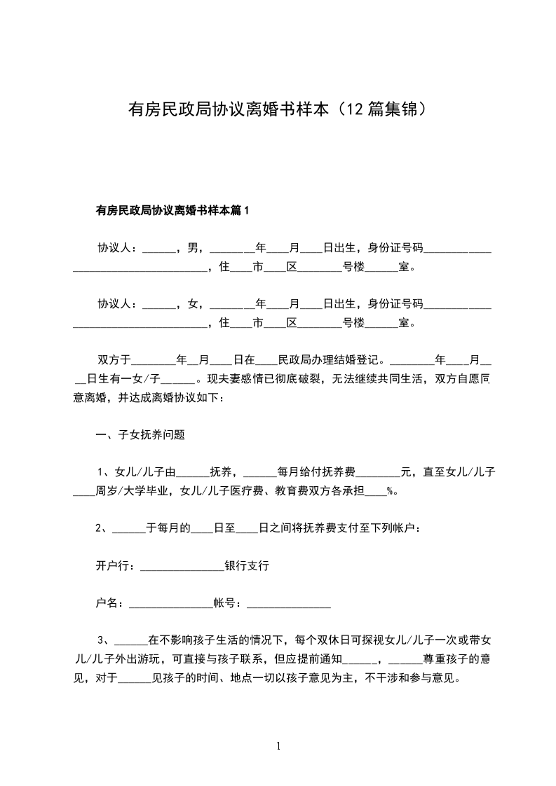 有房民政局协议离婚书样本篇12