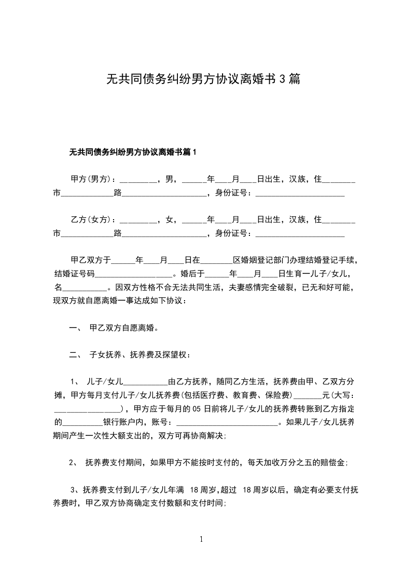 本协议一式三份,自婚姻登记机颁发《离婚证》之日起生效,男、女双方各执一份,婚姻登记机关存档一份。