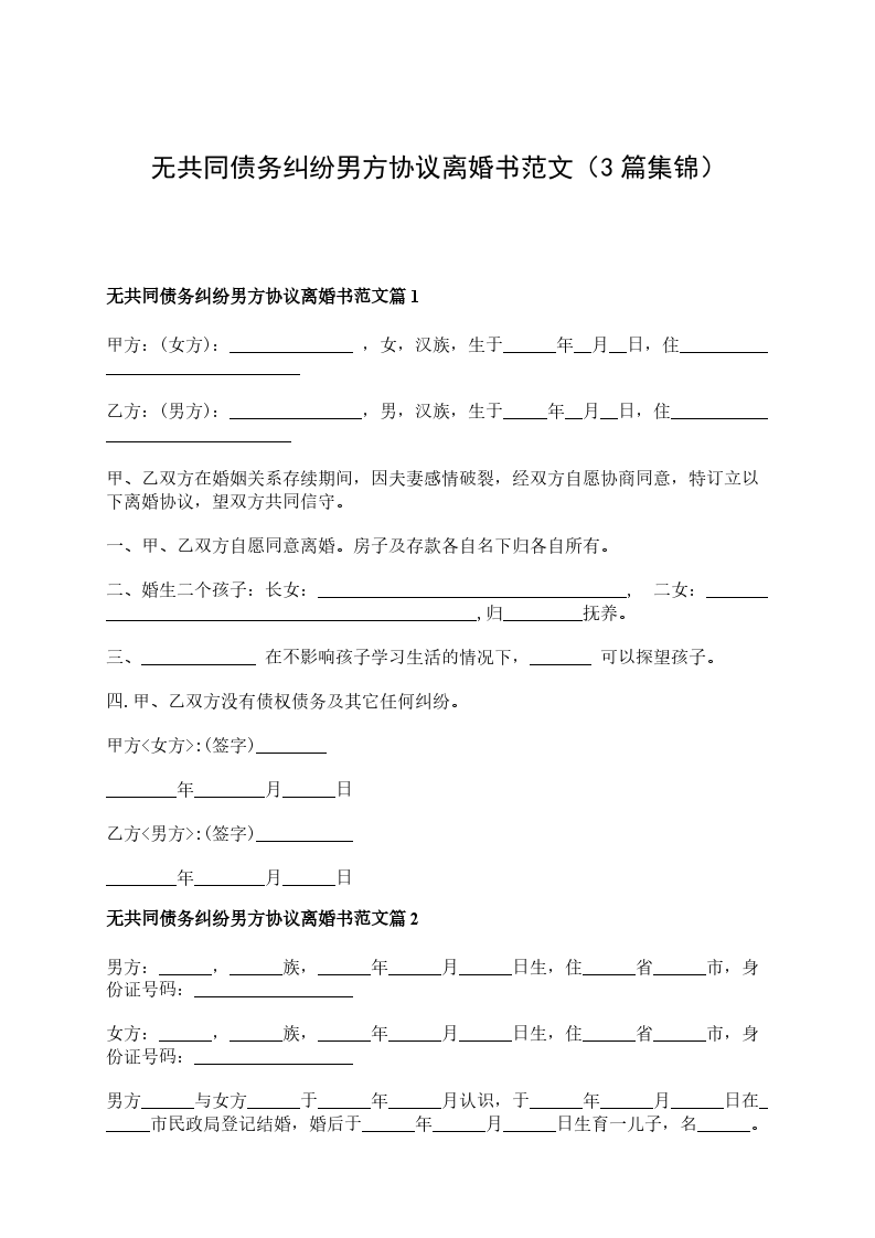 八、本协议一式三份,双方各执一份,婚姻登记机关存档一份。