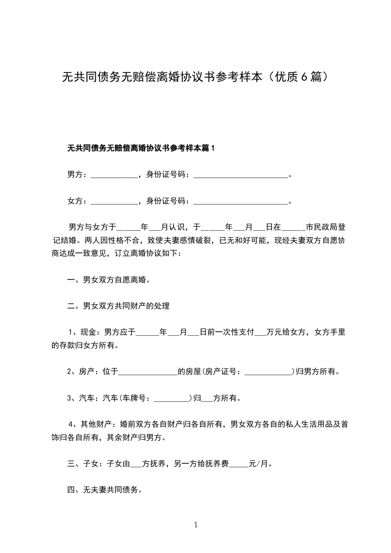 双方确认在婚姻关系存续期间没有发生任何共同债务,任何一方如对外负有债务的,由负债方自行承担。