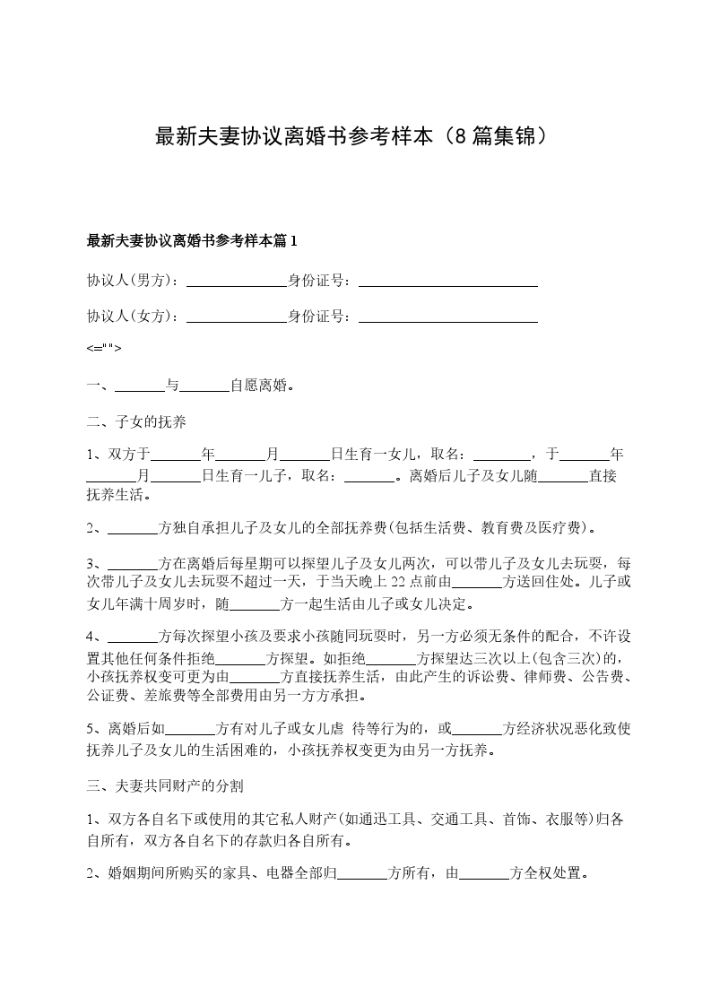 最新夫妻协商协议离婚范本样本篇8