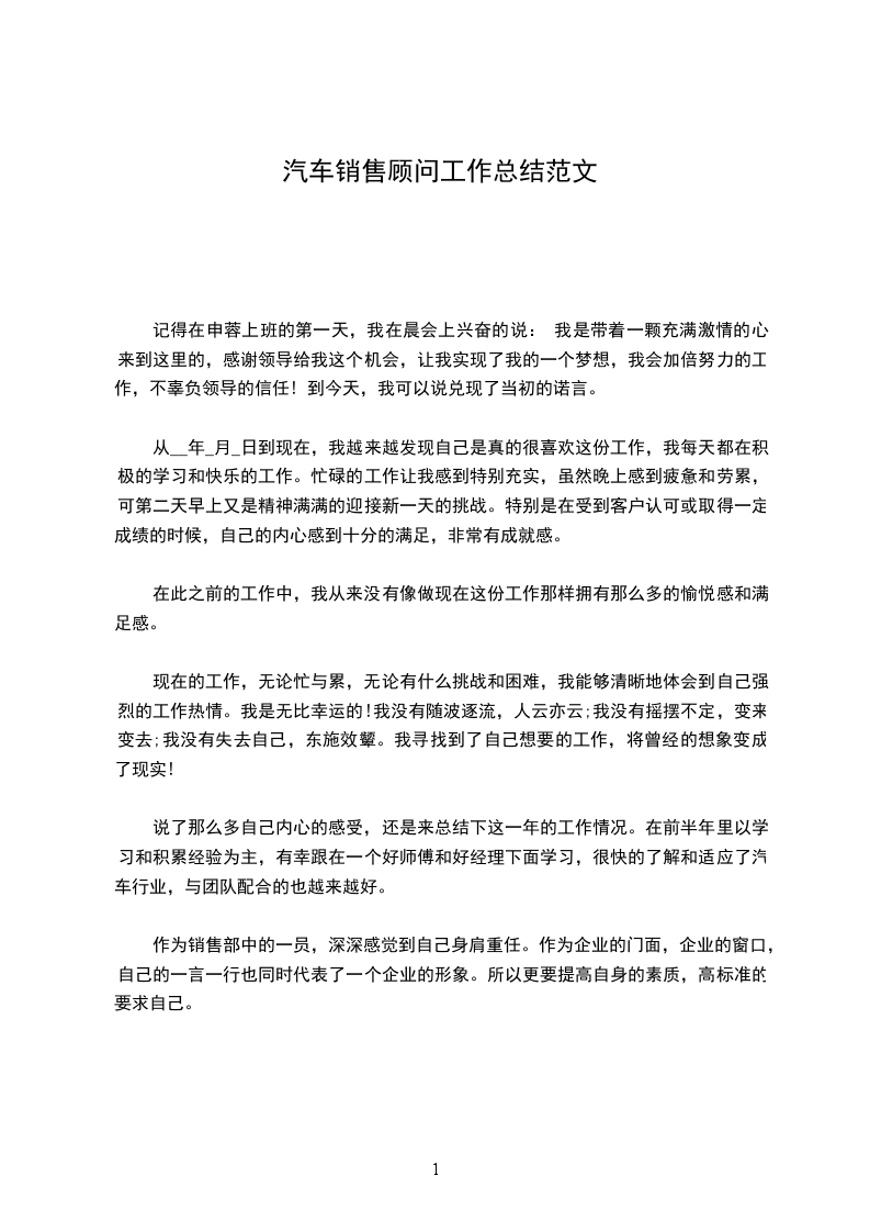 从__年_月_日到现在,我越来越发现自己是真的很喜欢这份工作,我每天都在积极的学习和快乐的工作。忙碌的工作让我感到特别充实,虽然晚上感到疲惫和劳累,可第二天早上又是精神满满的迎接新一天的挑战。特别是在受到客户认可或取得一定成绩的时候,自己的内心感到十分的满足,非常有成就感。