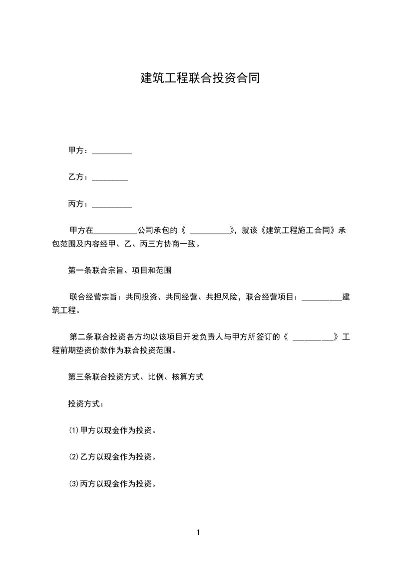 的居间费补偿)。本合同签字之日,各投资人以银行转帐方式向出纳交付投资款,出纳向各投资人出具收据。投资款用于支付该住宅楼房建设工程及其他与本工程相关的支出。若合伙人之一者未在约定的时间投入资金,减少其相应出资比例,该合伙人的最终出资比例占有额以实际投资计算。