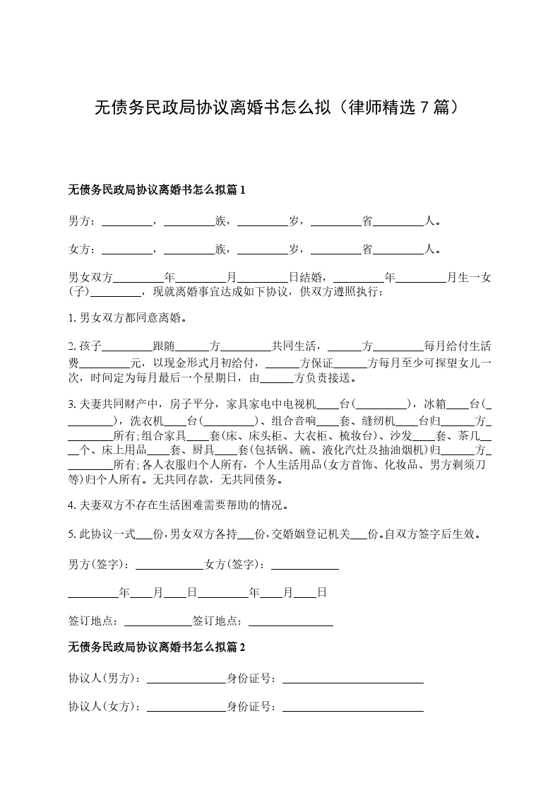 八、本协议一式三份,男、女双方各执一份,婚姻登记机关存档一份,自婚姻登记机颁发《离婚证》之日起生效。九、如本协议生效后在执行中发生争议的,双方应协商解决,协商不成,任何一方均可向相关人民法院起诉。