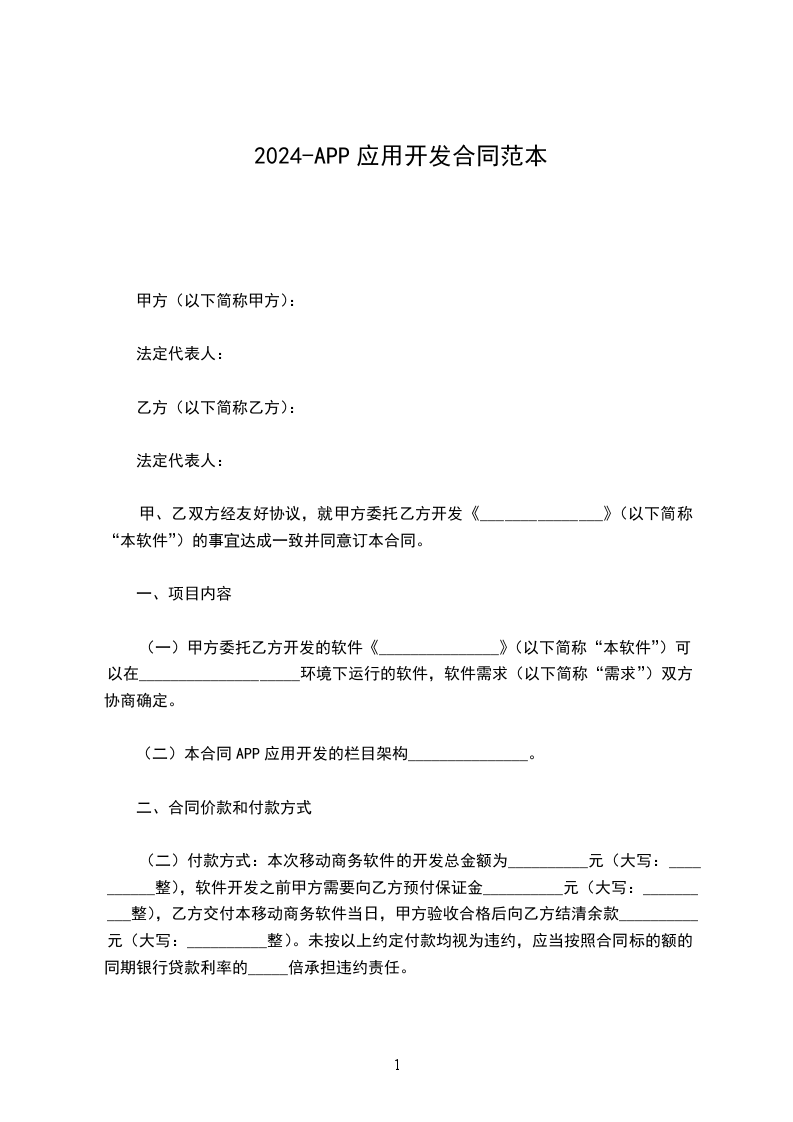 本次项目开发费用合计为人民币(币种下同) 元(大写: ),甲方按以下方式分期支付: