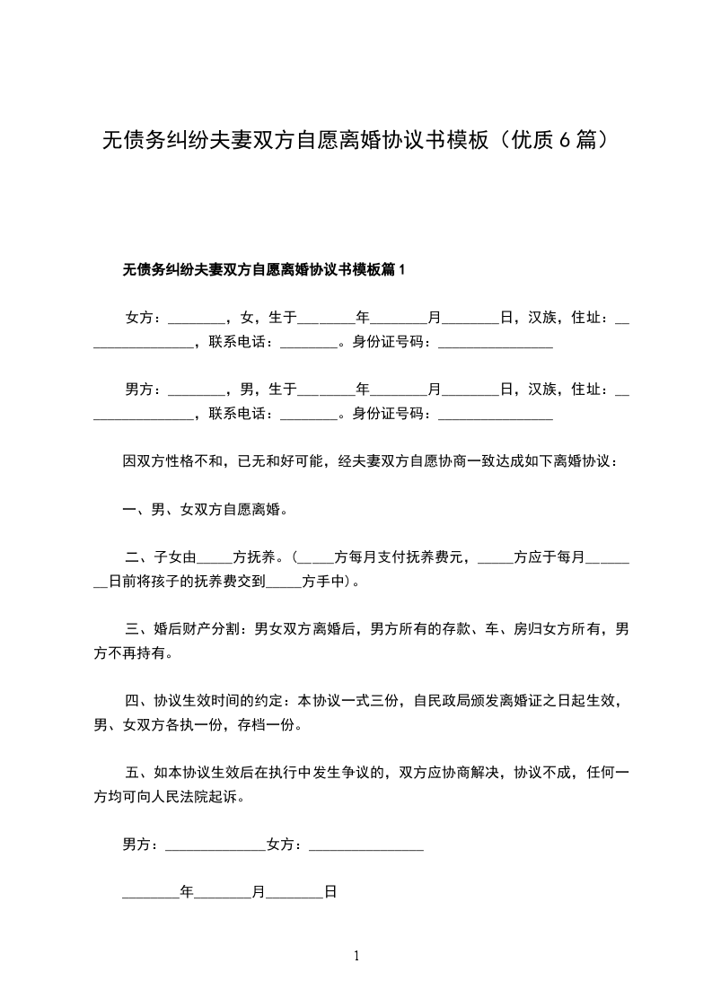 无债务纠纷夫妻双方自愿离婚协议书篇5