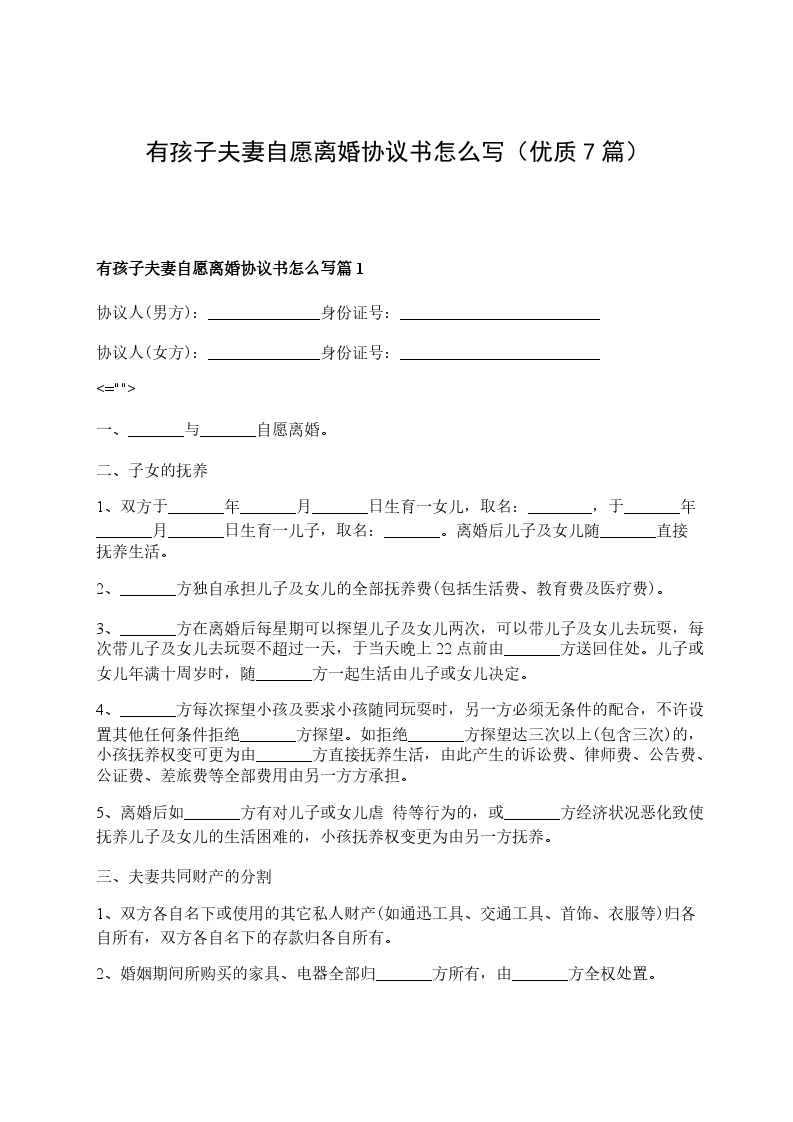 本协议书系双方真实意思表示,上述内容全部真实有效,一旦提供虚假情况,双方当事人自愿承担一切法律后果。本协议书一式____份,婚姻登记机关存档____份,双方各执____份,双方签字,并经婚姻登记机关办理离婚登记后生效。