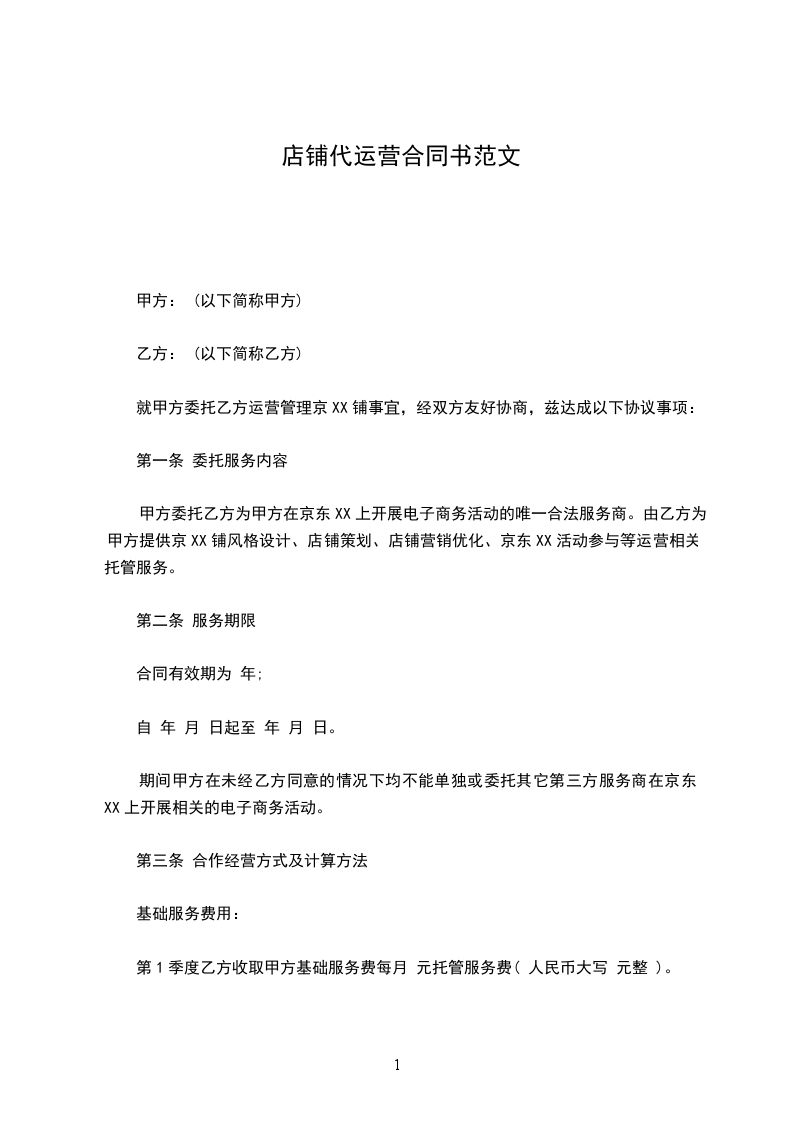 根据第一季度店铺整体运营状况,共同协商基础服务费用,确定第2-4季度乙方收取甲方基础服务费的数额。支付方式:按季支付,甲方在当季度初全额支付给乙方本季度基础服务费。