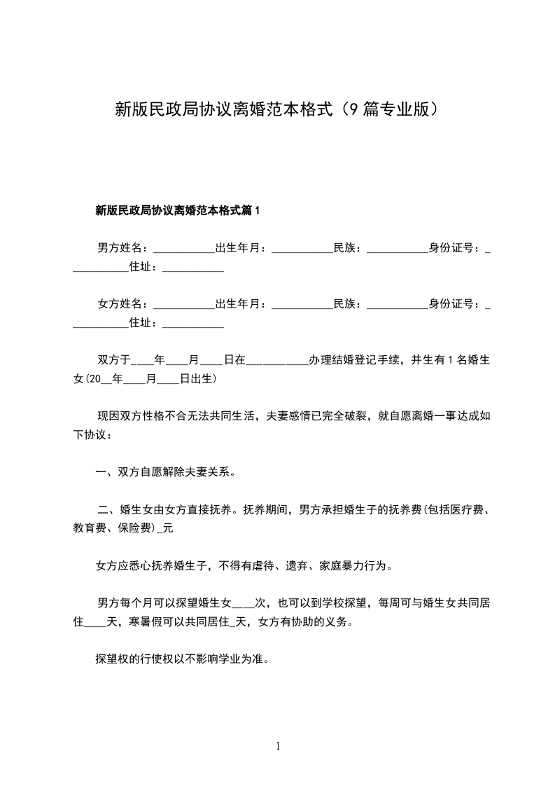 新版民政局离婚协议篇1