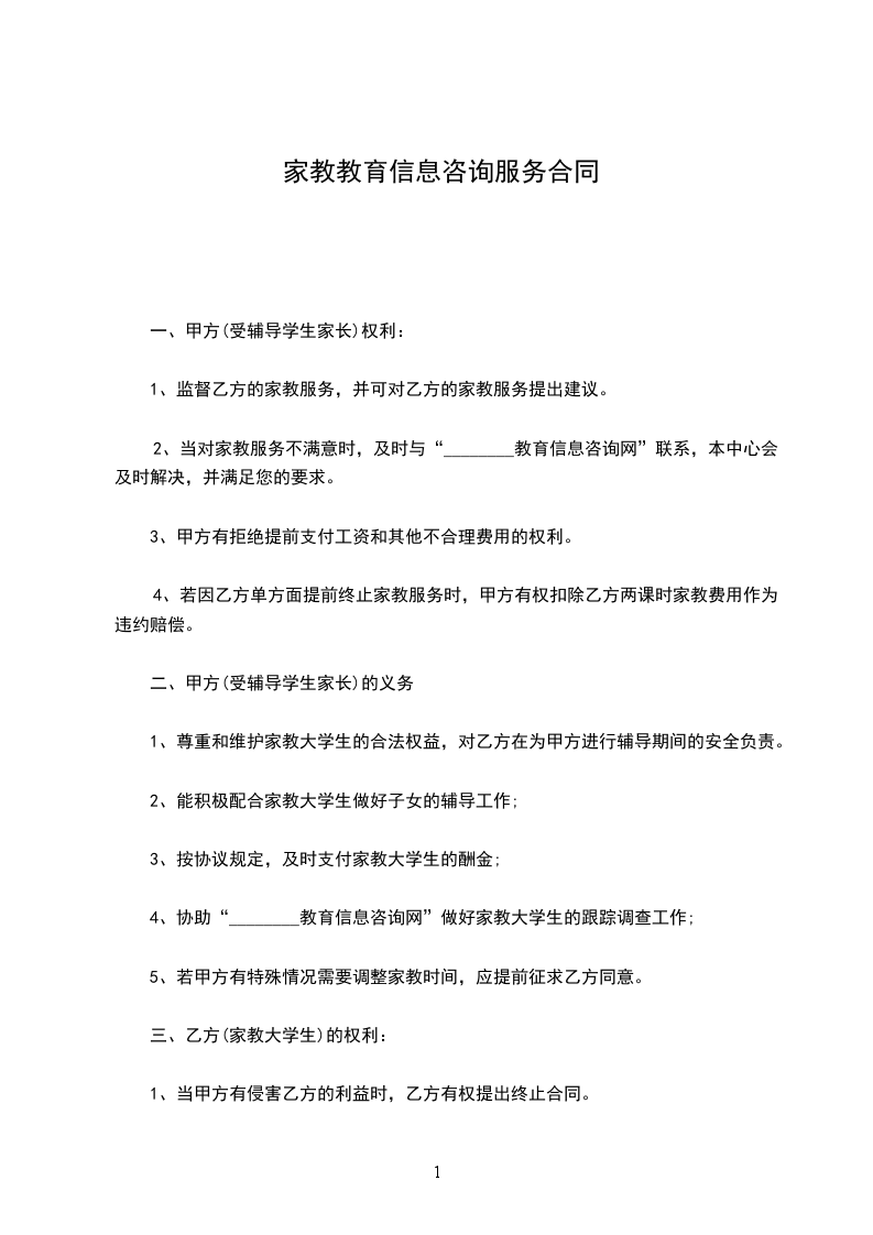根据《民法典》等有关法律、法规的规定,就乙方为甲方提供教育信息咨询事宜,双方在平等互惠、协商一致的基础上达成如下条款,以共同遵守。