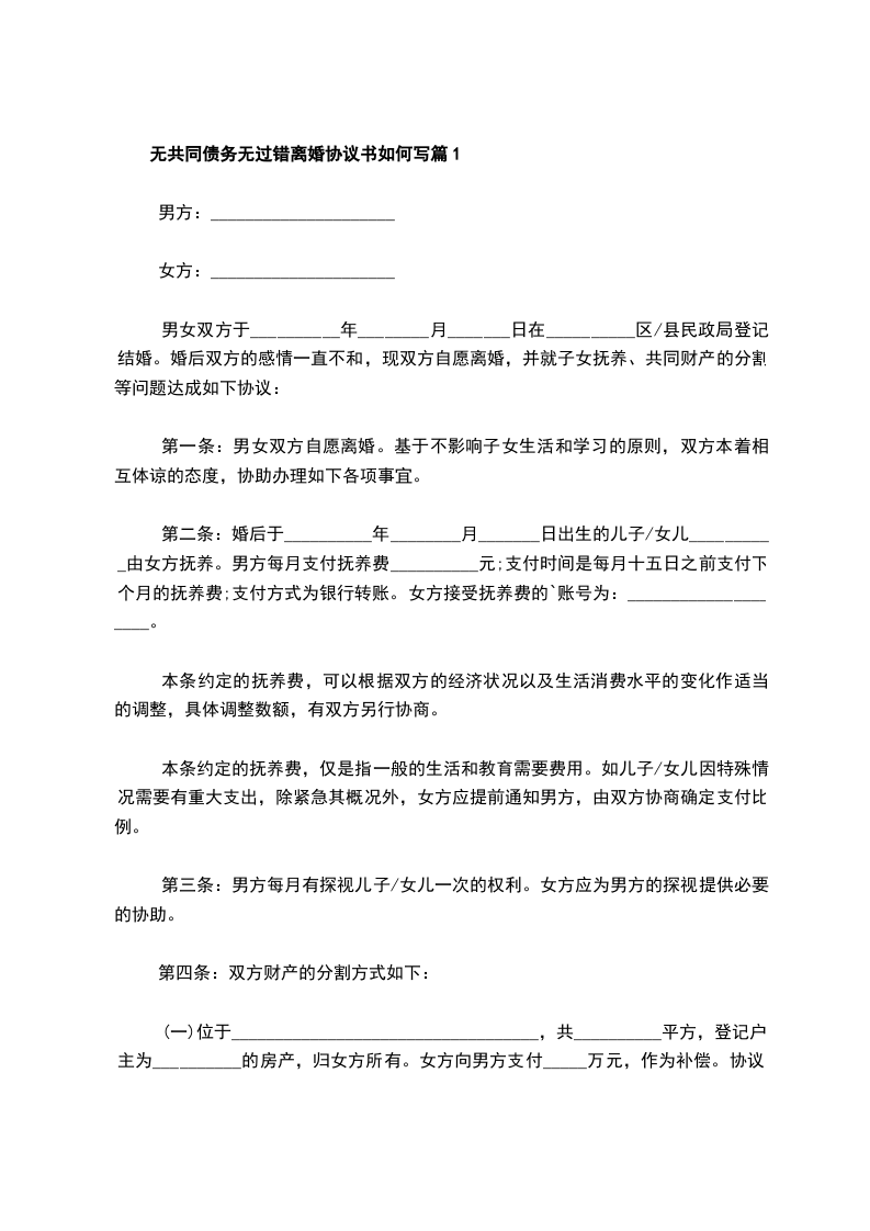 1、甲乙双方确认在婚姻关系存续期间无共同债务;