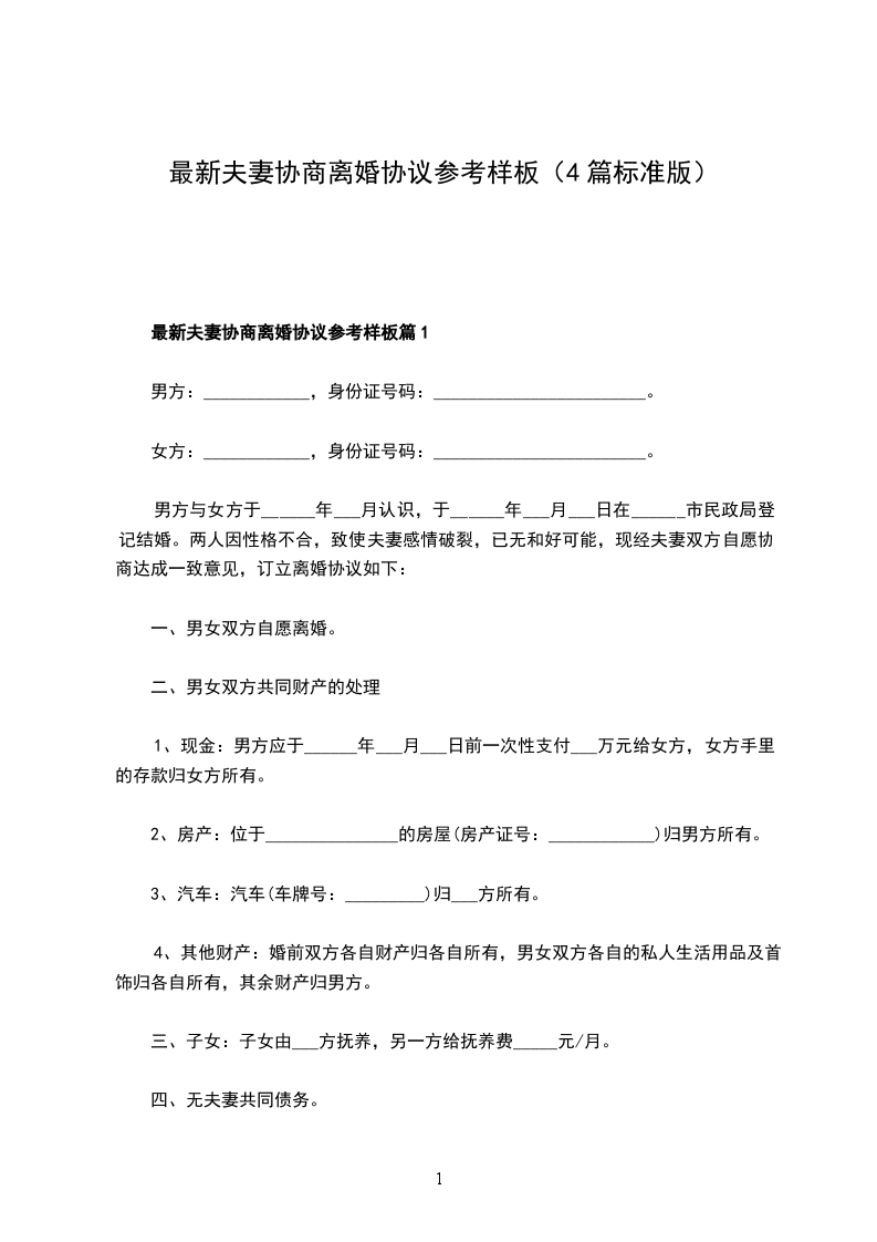 最新夫妻协商协议离婚书范文篇4