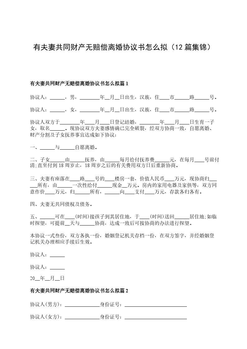 协议双方共同承诺:双方都具有完全民事行为能力,本协议系双方真实意思表示,上述内容全部真实有效,一旦提供虚假情况,双方当事人自愿承担一切法律后果。本协议一式叁份,双方各执一份,婚姻登记机关存档一份,在双方签字并经婚姻登记机关办理相应手续后生效。