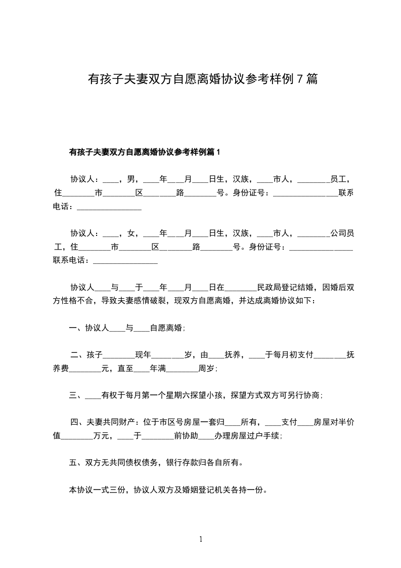 有孩子夫妻双方自愿离婚协议参考样例篇7