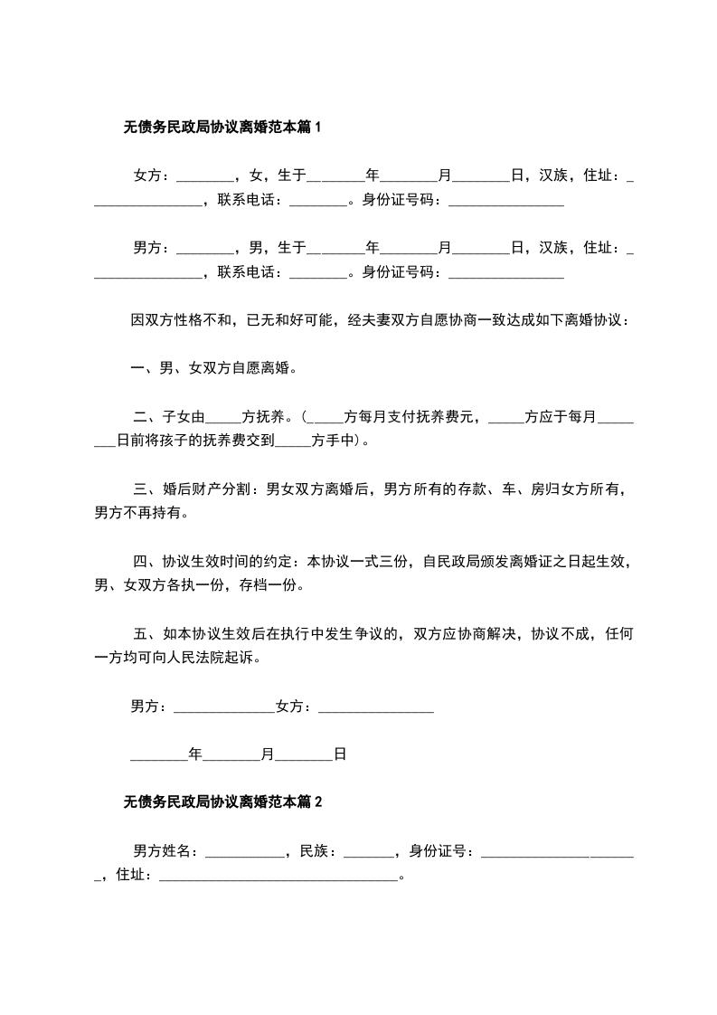 无债务民政局协议离婚范本篇9