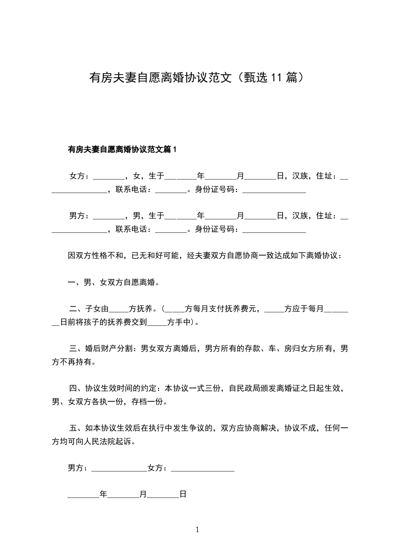 六、本协议书一式三份,男女双方各执一份,婚姻登记机关存档一份。