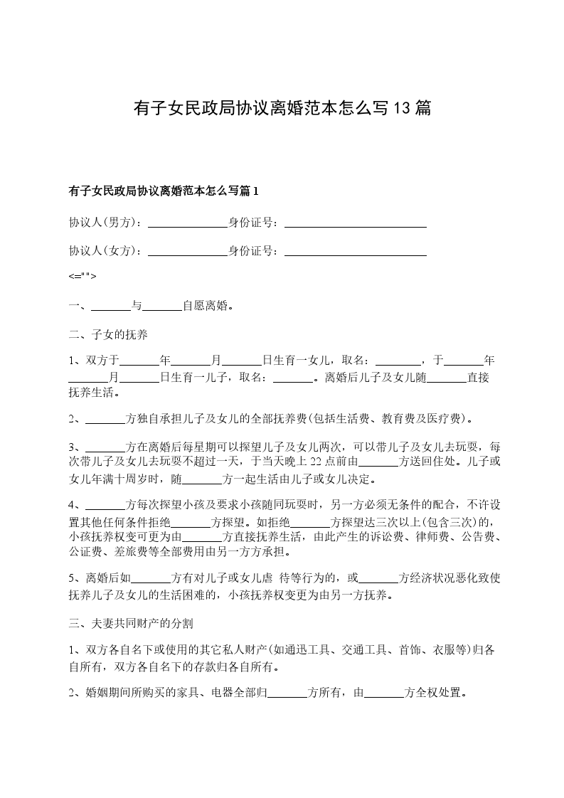 有子女民政局协议离婚范本怎么写篇13