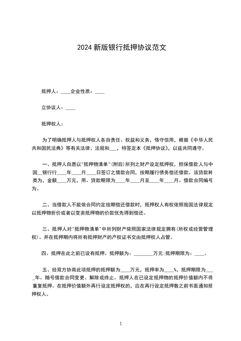 抵押人:____ 企业性质:____