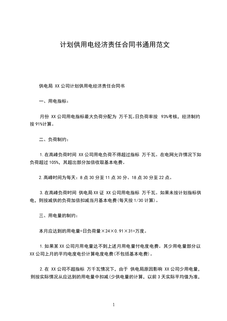1.在高峰负荷时间 XX公司用电负荷不得超过指标 万千瓦。在电网允许情况下如负荷超过105%,其超出部分加倍收取基本电费。