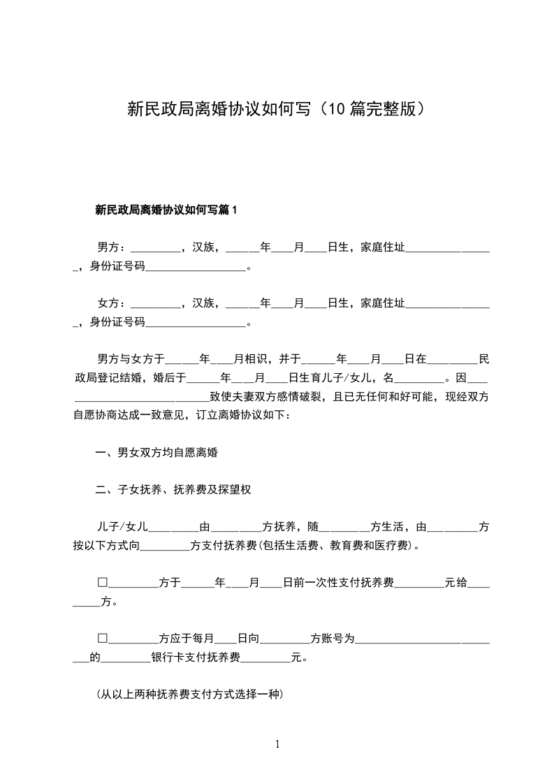 新民政局离婚协议如何写篇9