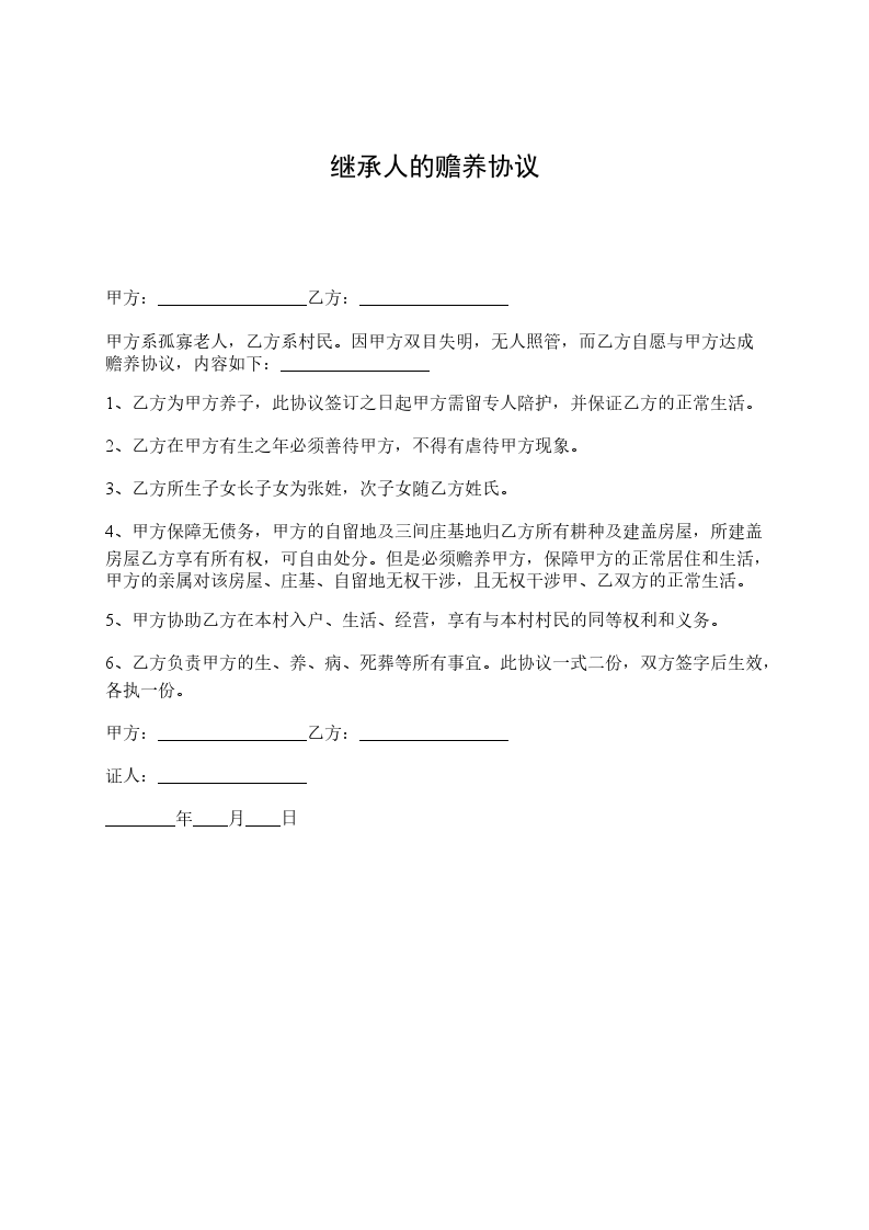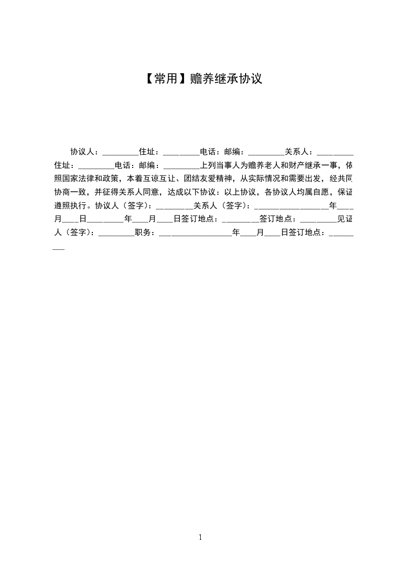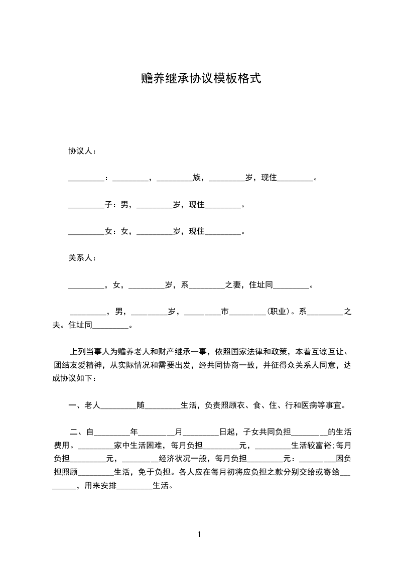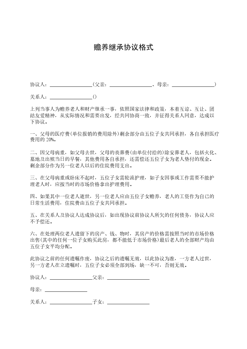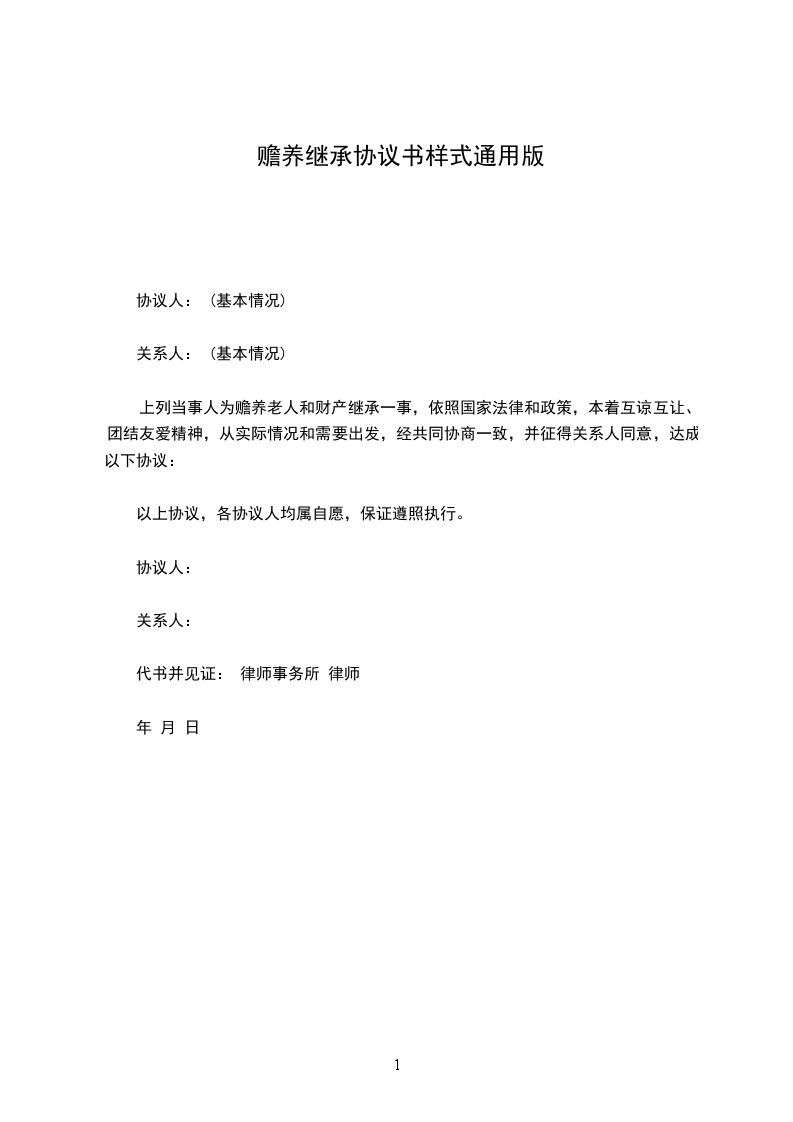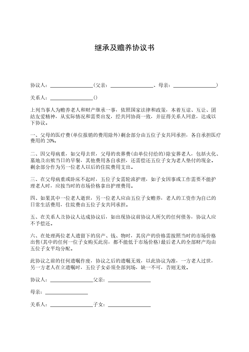 上列当事人为赡养老人和财产继承一事,依照国家法律和政策,本着互谅互让、团结友爱精神,从实际情况和需要出发,经共同协商一致,并征得关系人同意,达成以下协议: