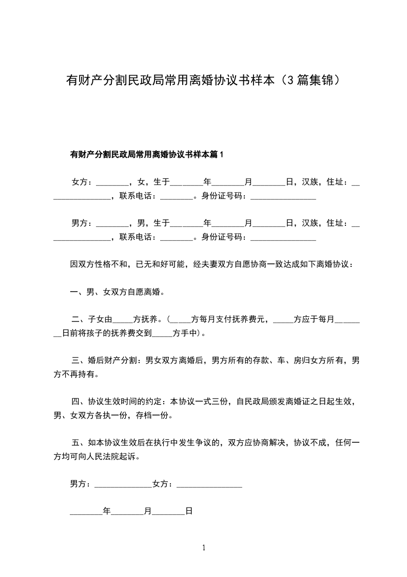 七、本协议一式三份,自婚姻登记机颁发《离婚证》之日起生效,男、女双方各执一份,婚姻登记机关存档一份。
