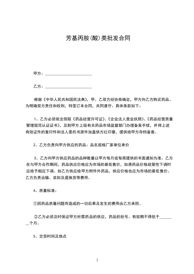根据《中华人民共和国民法典》,甲、乙双方经协商确定,甲方向乙方购买药品。为明确双方责任和权利,特签订本合同,共同遵守。具体条款如下: