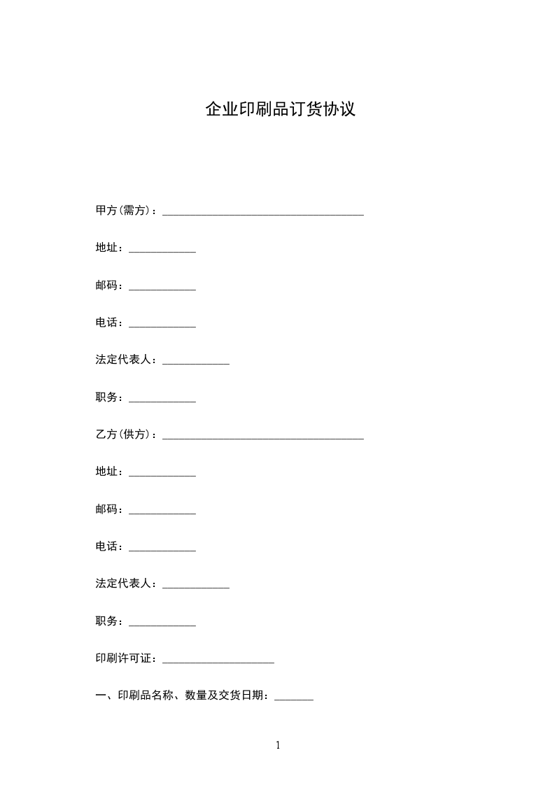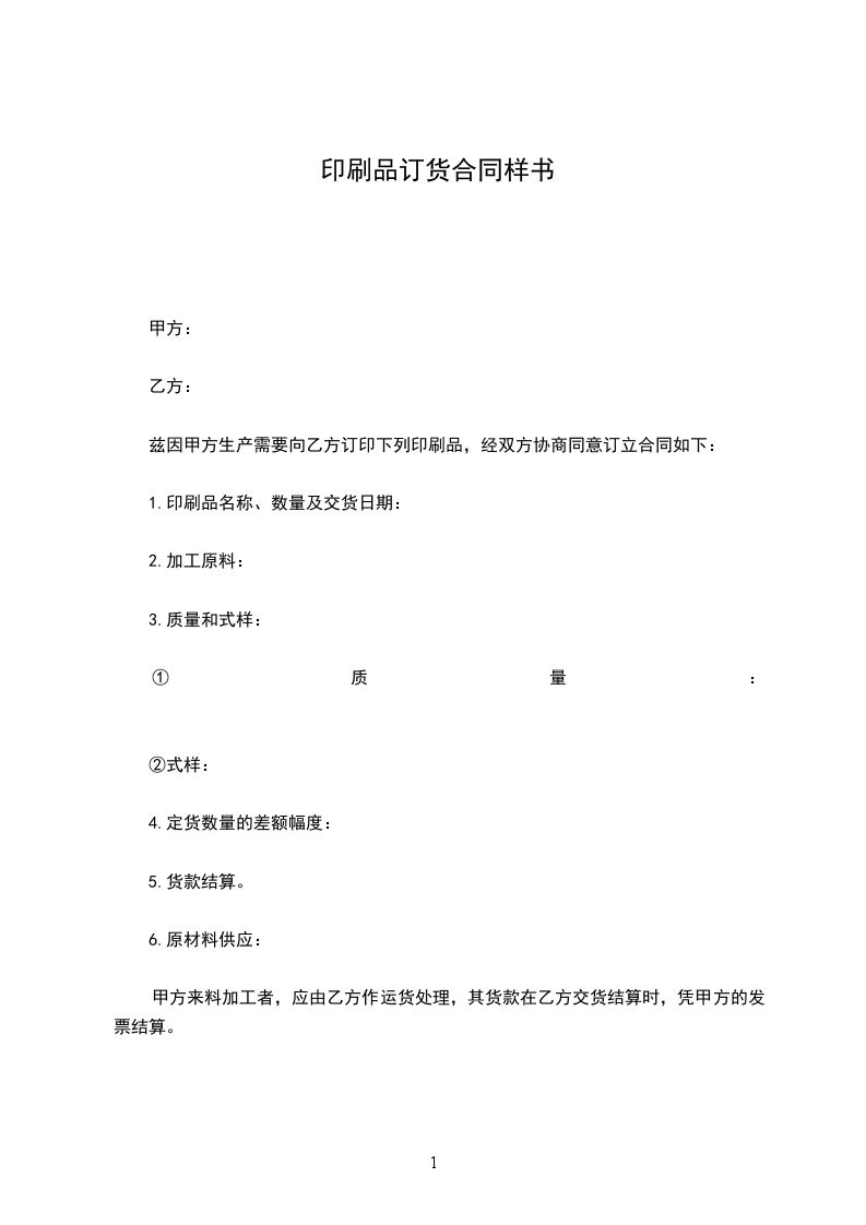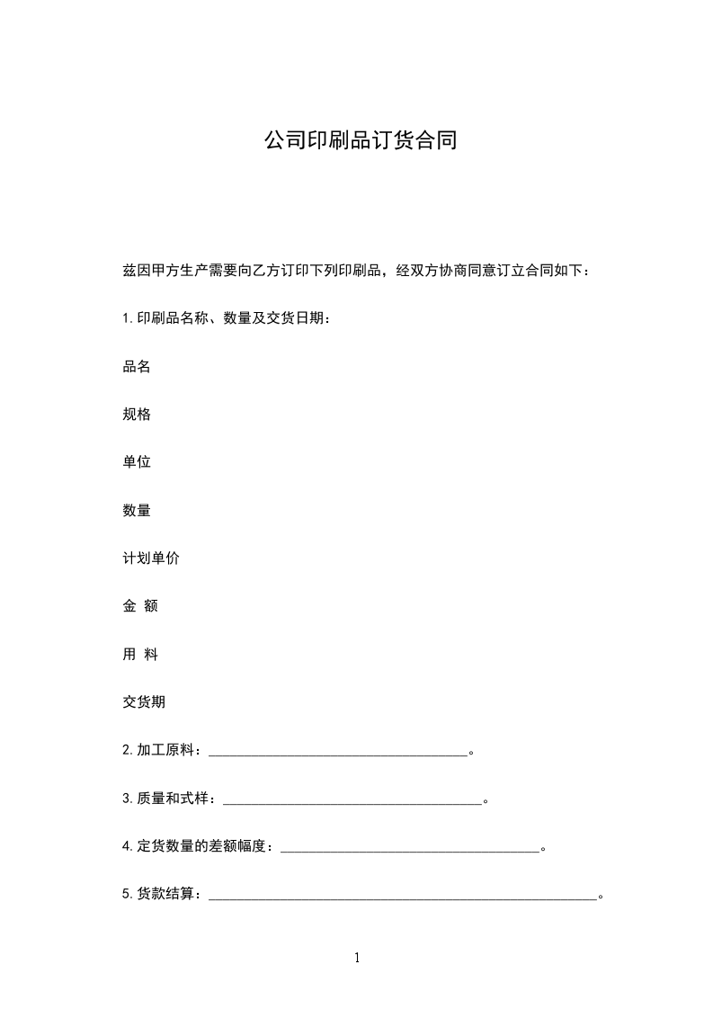 兹因甲方生产需要向乙方订印下列印刷品,经双方协商同意订立合同如下: