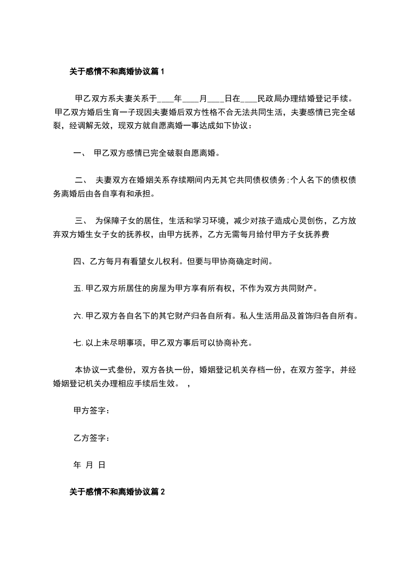 关于感情不和离婚协议篇6