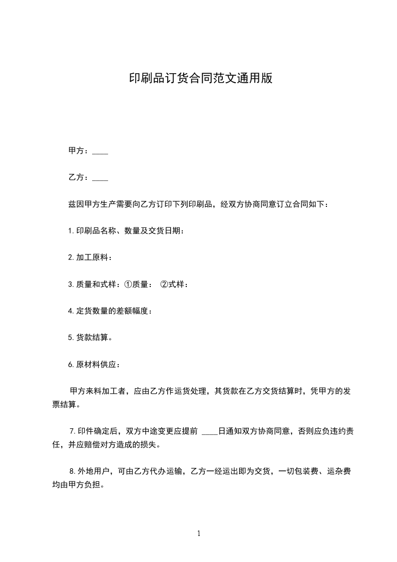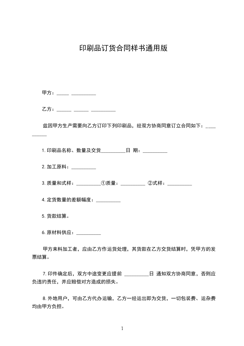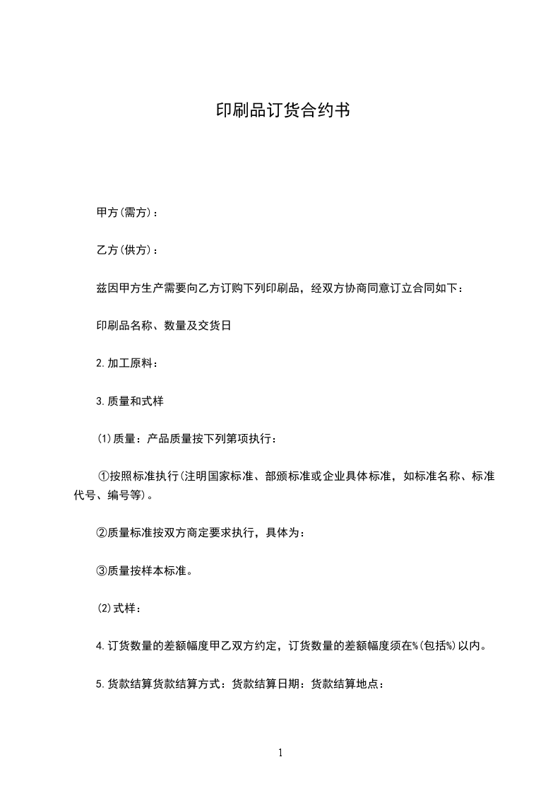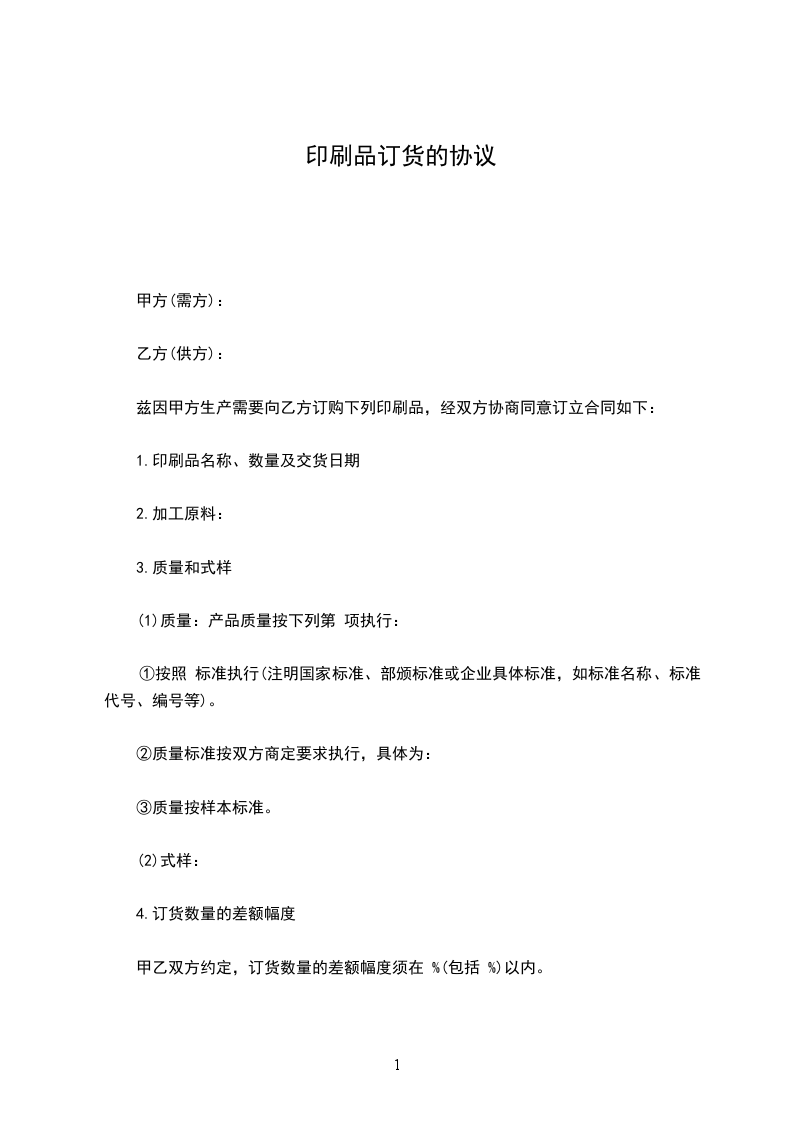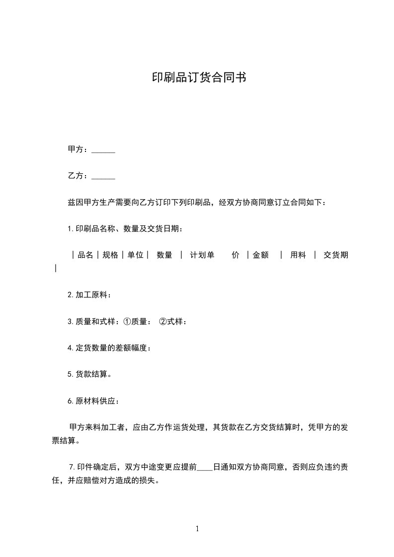 兹因甲方生产需要向乙方订印下列印刷品,经双方协商同意订立合同如下: