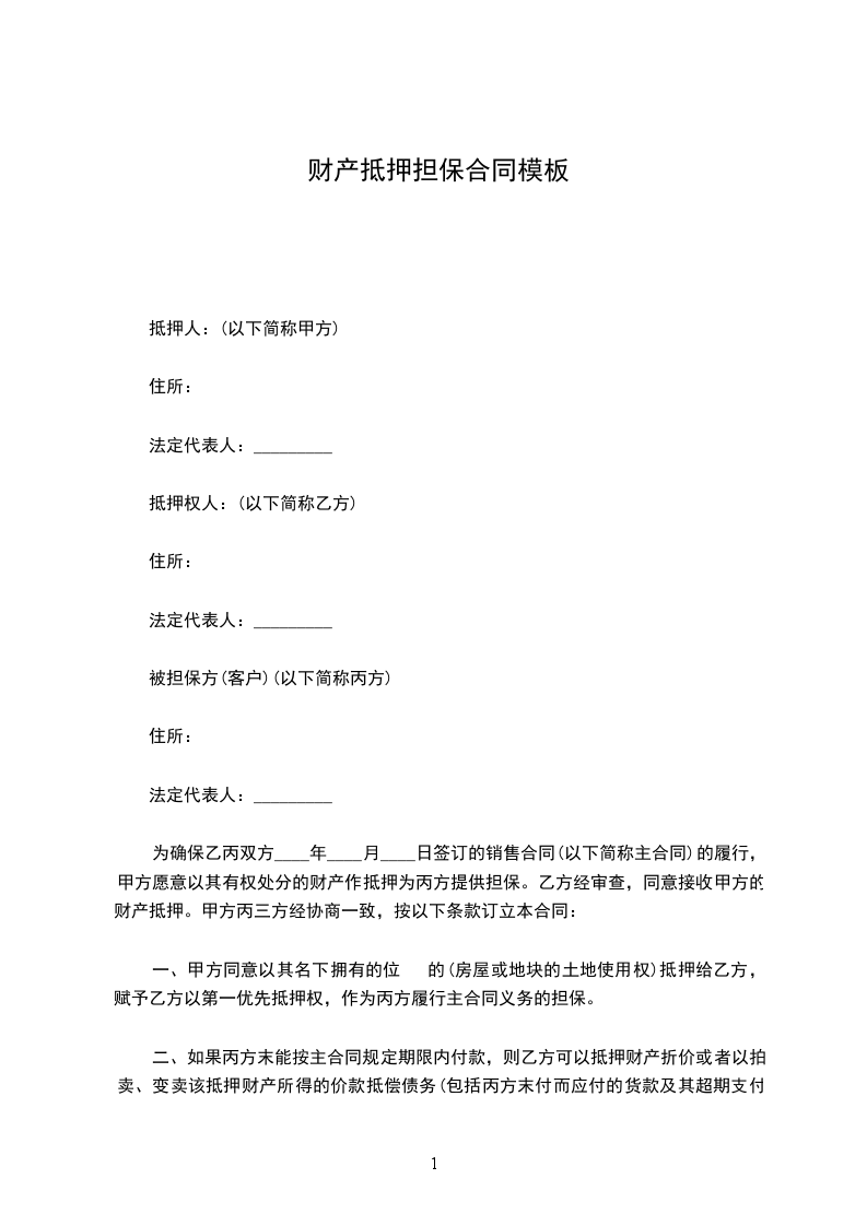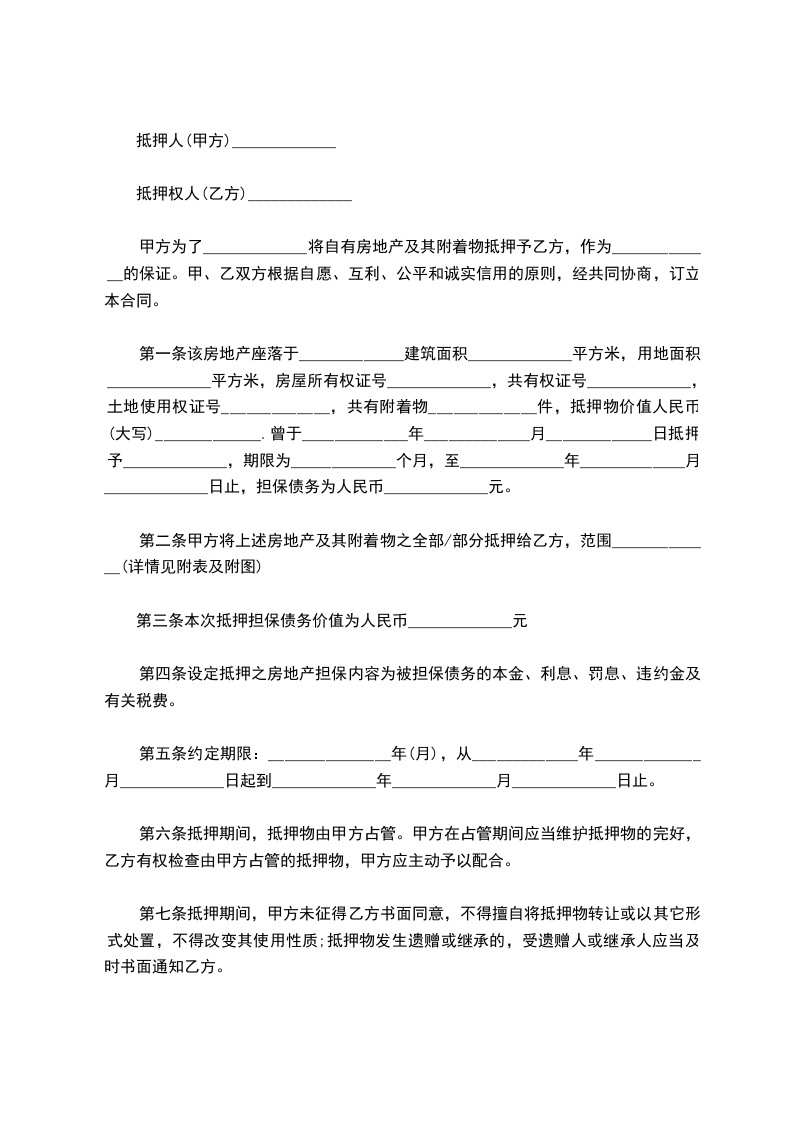 借款方为取得借款,贷款方为确保贷款安全,经借贷双方协商同意,特签订本财产抵押契约。双方在共同遵守国家法律和信贷政策的前提下,保证恪守下列条款: