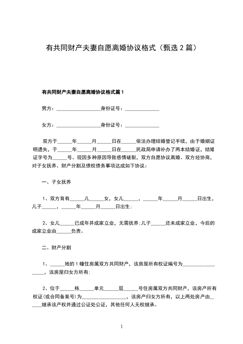 1、______地的1幢住房属双方共同财产,该房屋所有权证编号为__________________,该房屋归女方所有;