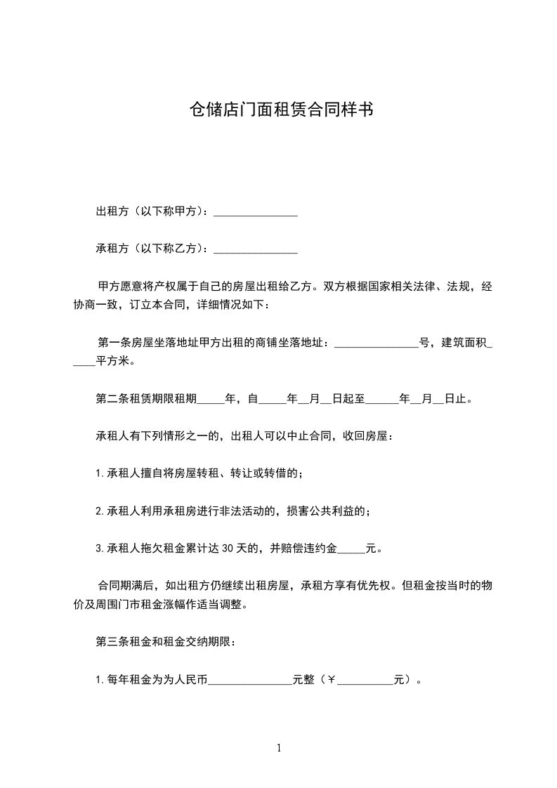 第一条房屋坐落地址甲方出租的商铺坐落地址:_______________号,建筑面积_____平方米。