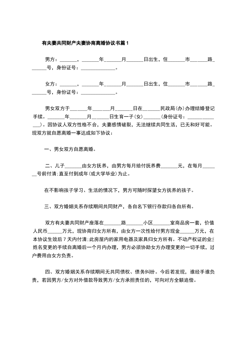 有夫妻共同财产夫妻协商离婚协议书篇6