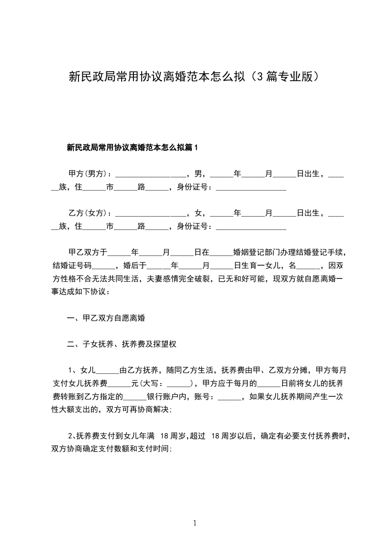 新民政局常用协议离婚范本怎么拟篇3
