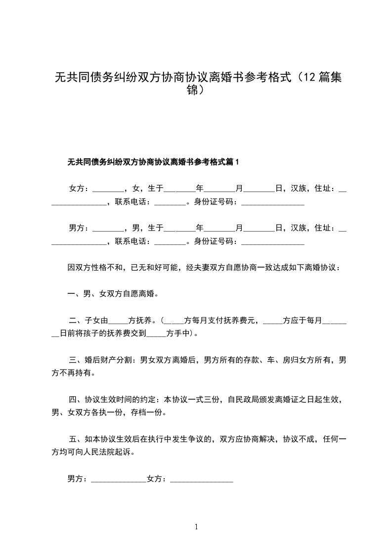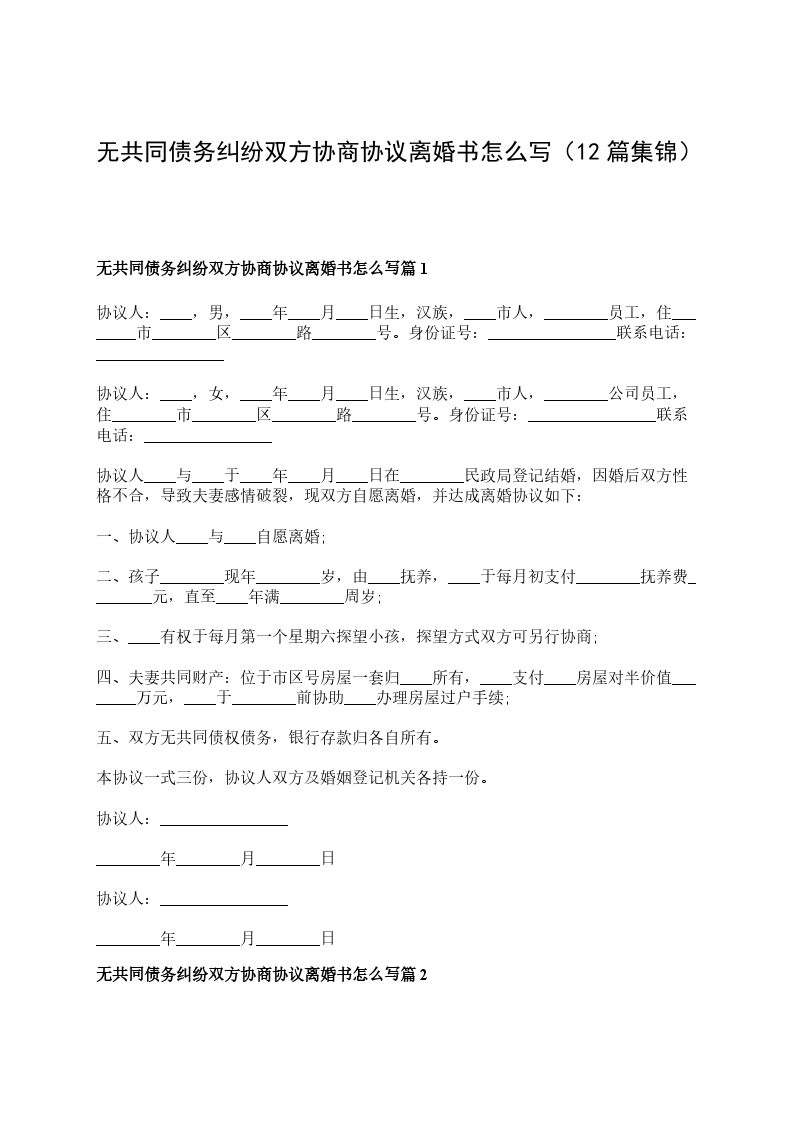 1、甲乙双方确认在婚姻关系存续期间无共同债务;