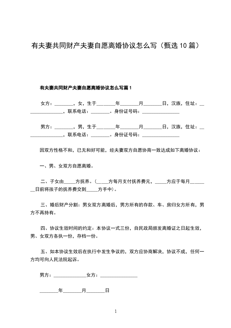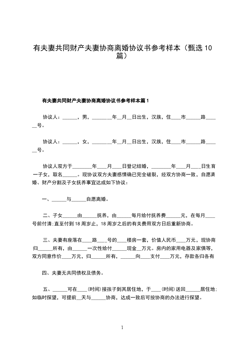 有夫妻共同财产夫妻离婚协议书范文篇10