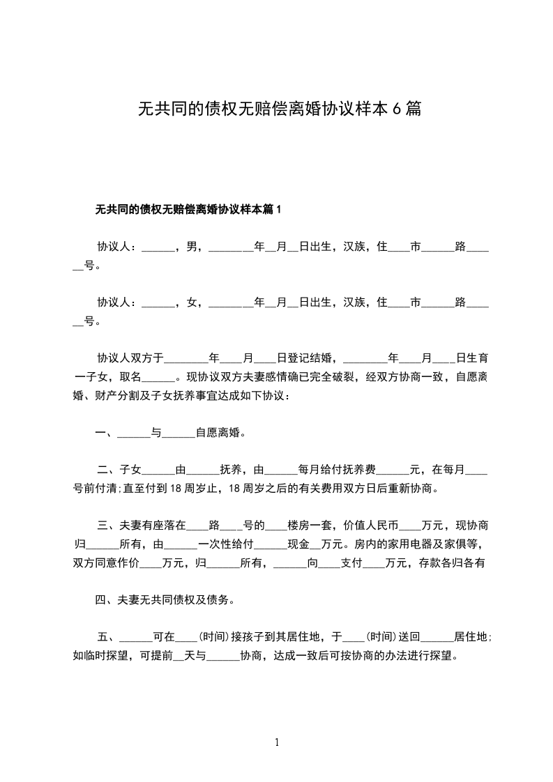 无共同的债权无赔偿离婚协议样本篇6