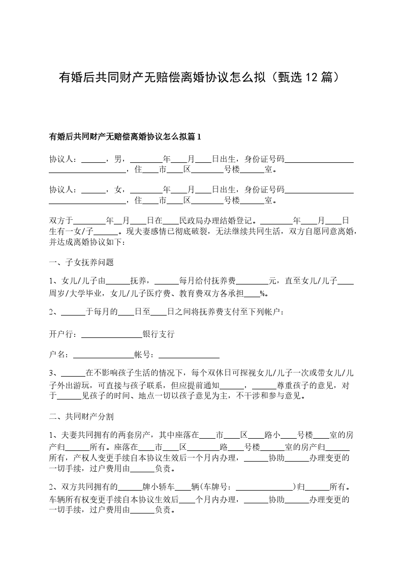 无共同债权无赔偿离婚协议怎么拟篇9