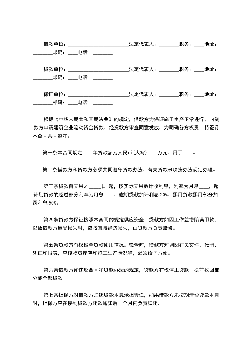 第八条 本合同经借款方、贷款方、保证方签章后生效,至此项借款本息全部还清后终止。合同正本三份:借款方、贷款方、保证方各执一份;副本四份:报送人民银行一、二级分行,当地工商行政管理局、税务局。