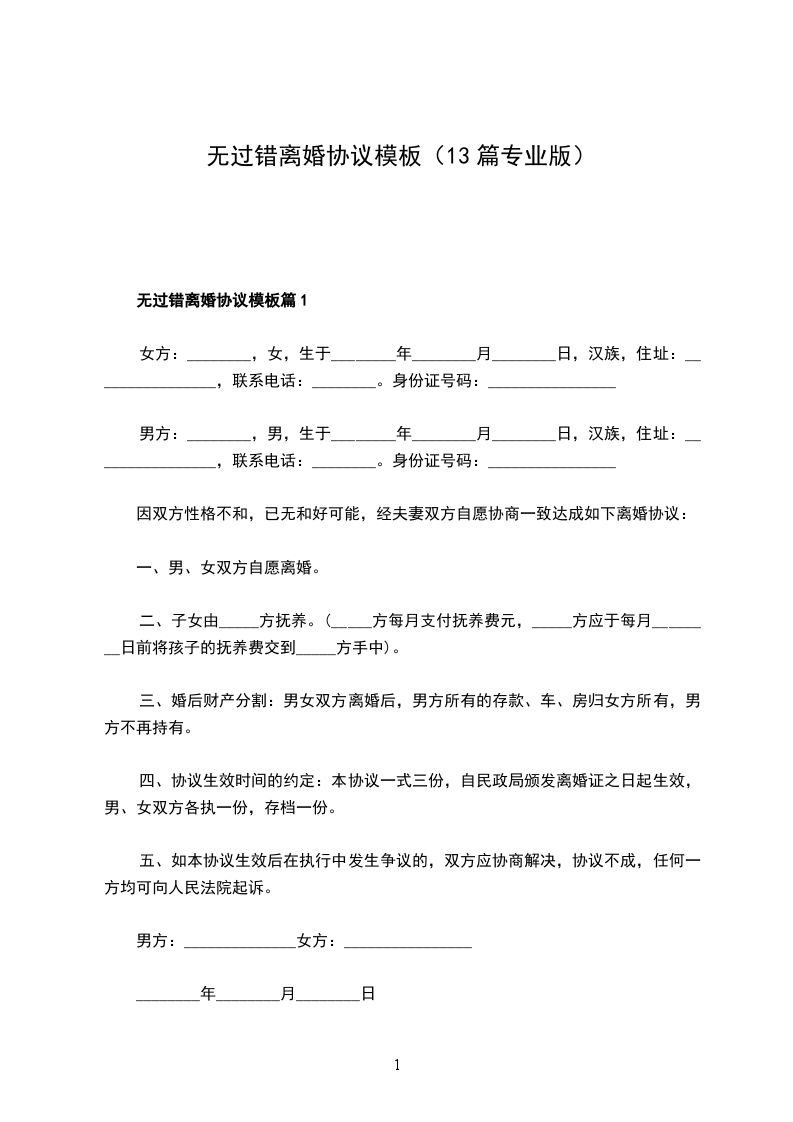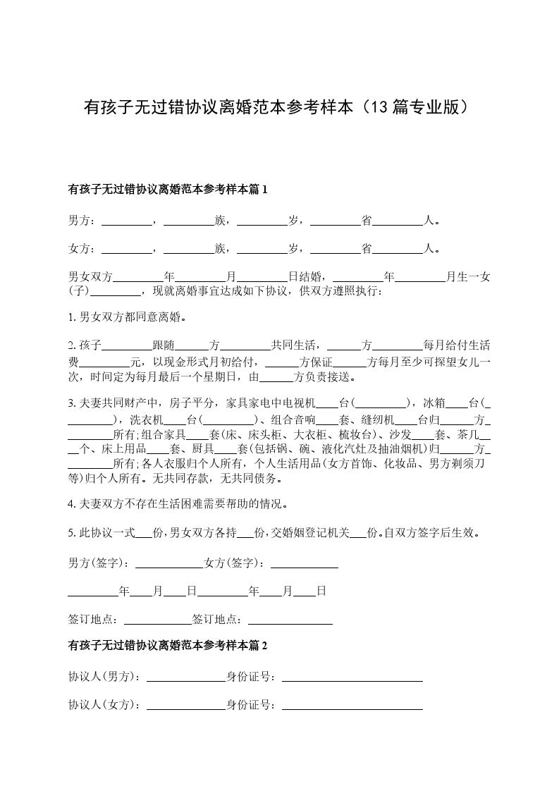 有孩子无过错离婚协议如何写篇13