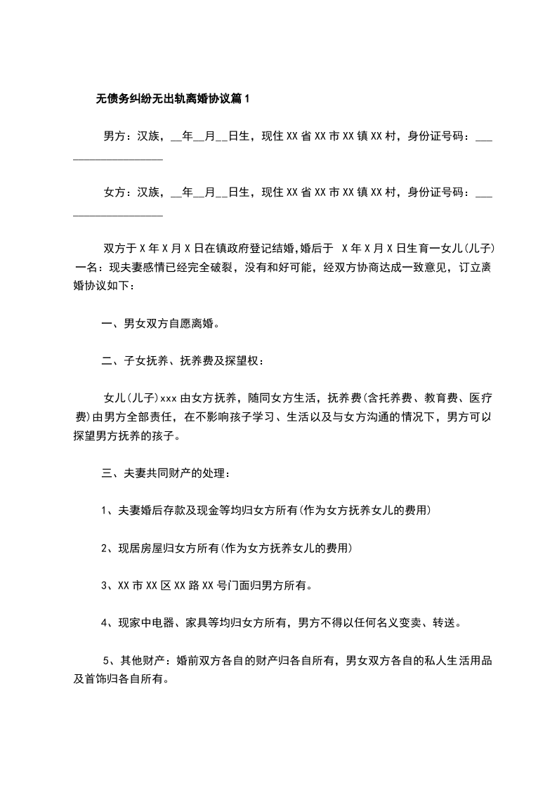 五、双方确认在婚姻关系存续期间没有发生任何共同债务,任何一方如对外负有债务的,由负债方自行承担。