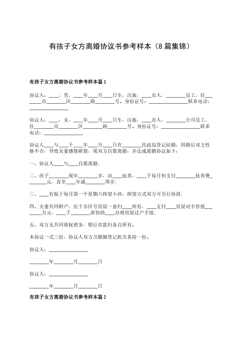 男女双方_________年_________月_________日结婚,_________年_________月生一女(子)_________,现就离婚事宜达成如下协议,供双方遵照执行: