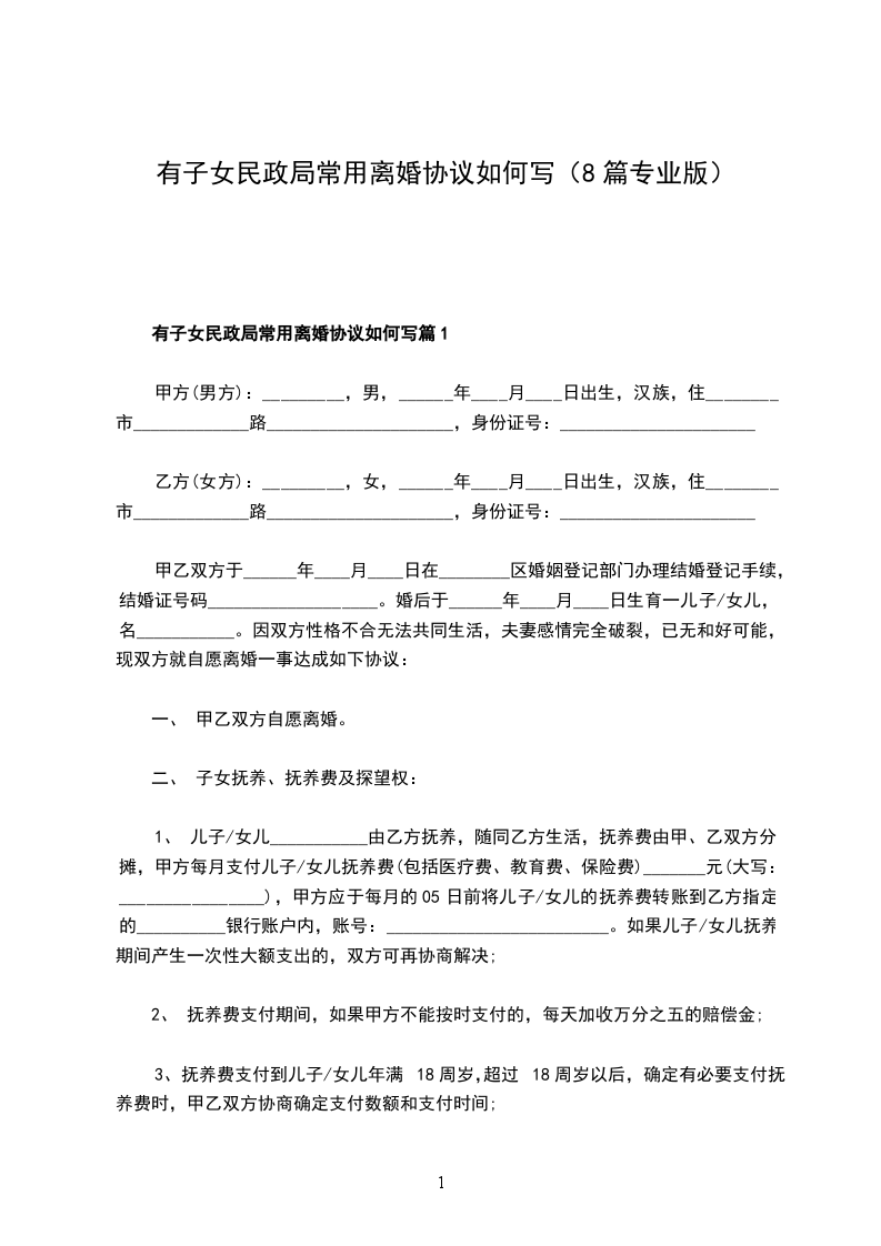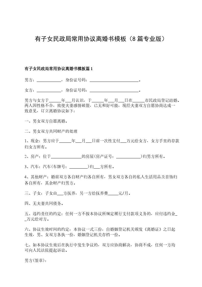 有子女民政局常用离婚协议如何写篇8