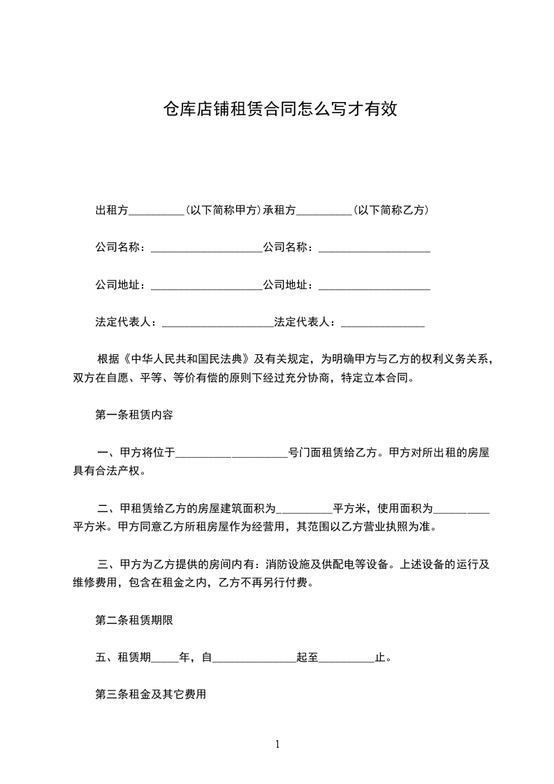 一、甲方将位于____________________号门面租赁给乙方。甲方对所出租的房屋具有合法产权。
