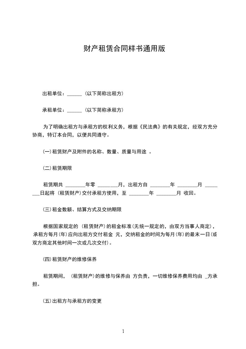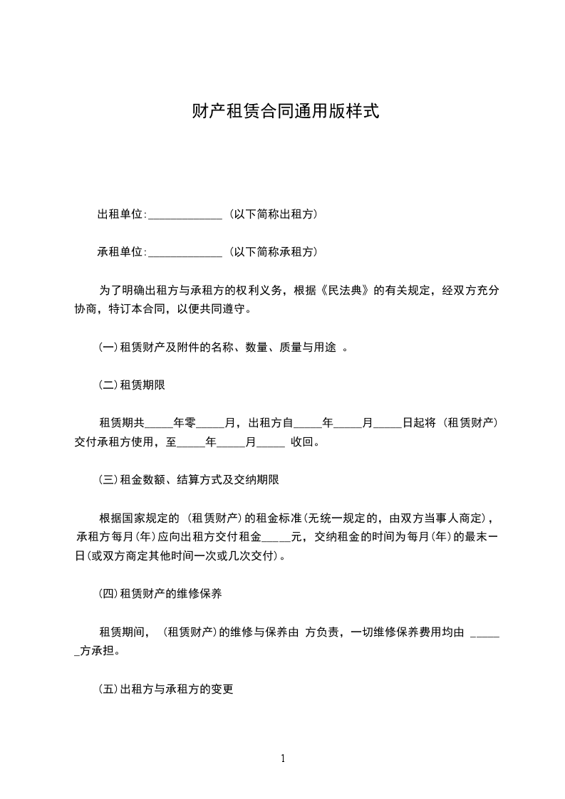 为了明确出租方与承租方的权利义务,根据《民法典》的有关规定,经双方充分协商,特订本合同,以便共同遵守。