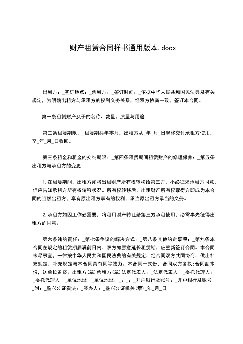 2.承租方如因工作上的需要,将 _(租赁财产)转让给第三方承担使用,必须事先征得出租方的同意。取得 (租赁财产)使用权的第三方即成为本合同的当然承租方,享有原承租方的权利,承担原承租方的义务。